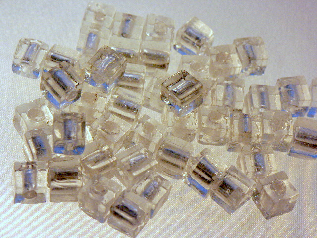 Bag of Clear Silver Foil Cube Beads 8x8mm