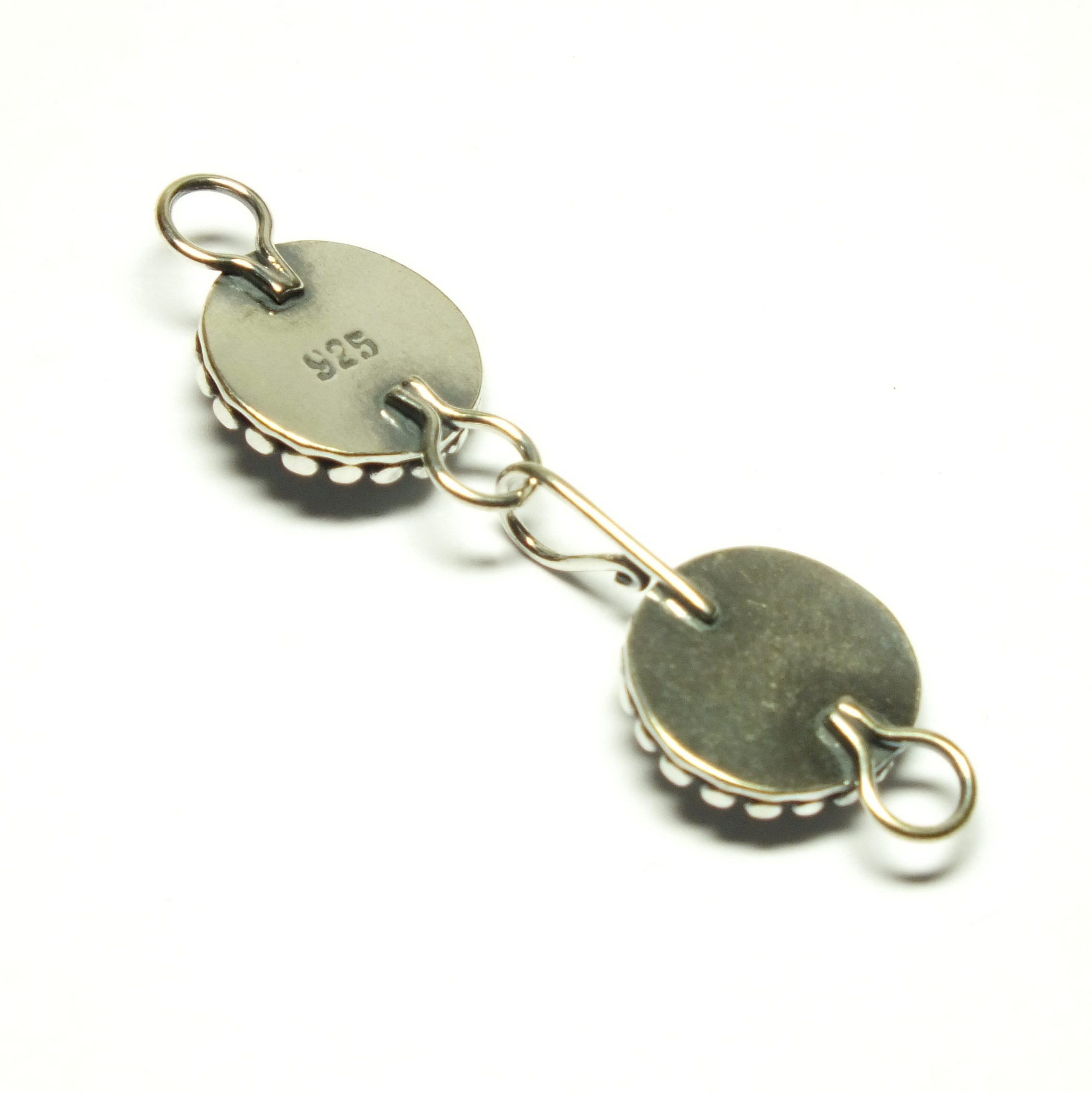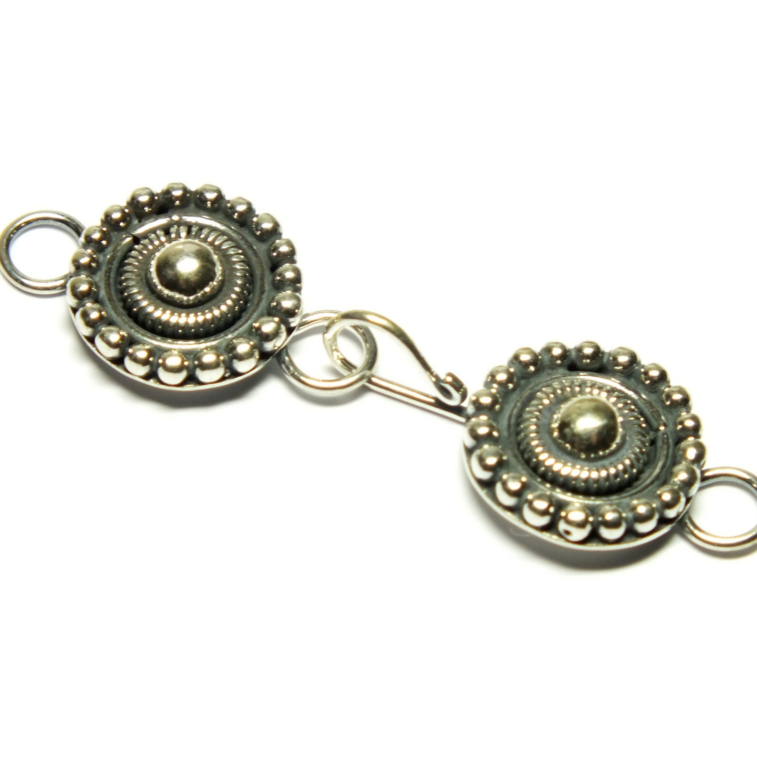 Sterling Silver Hook Clasp Length 39mm. Each rosette 12mm diameter, with fixed 5mm loops.