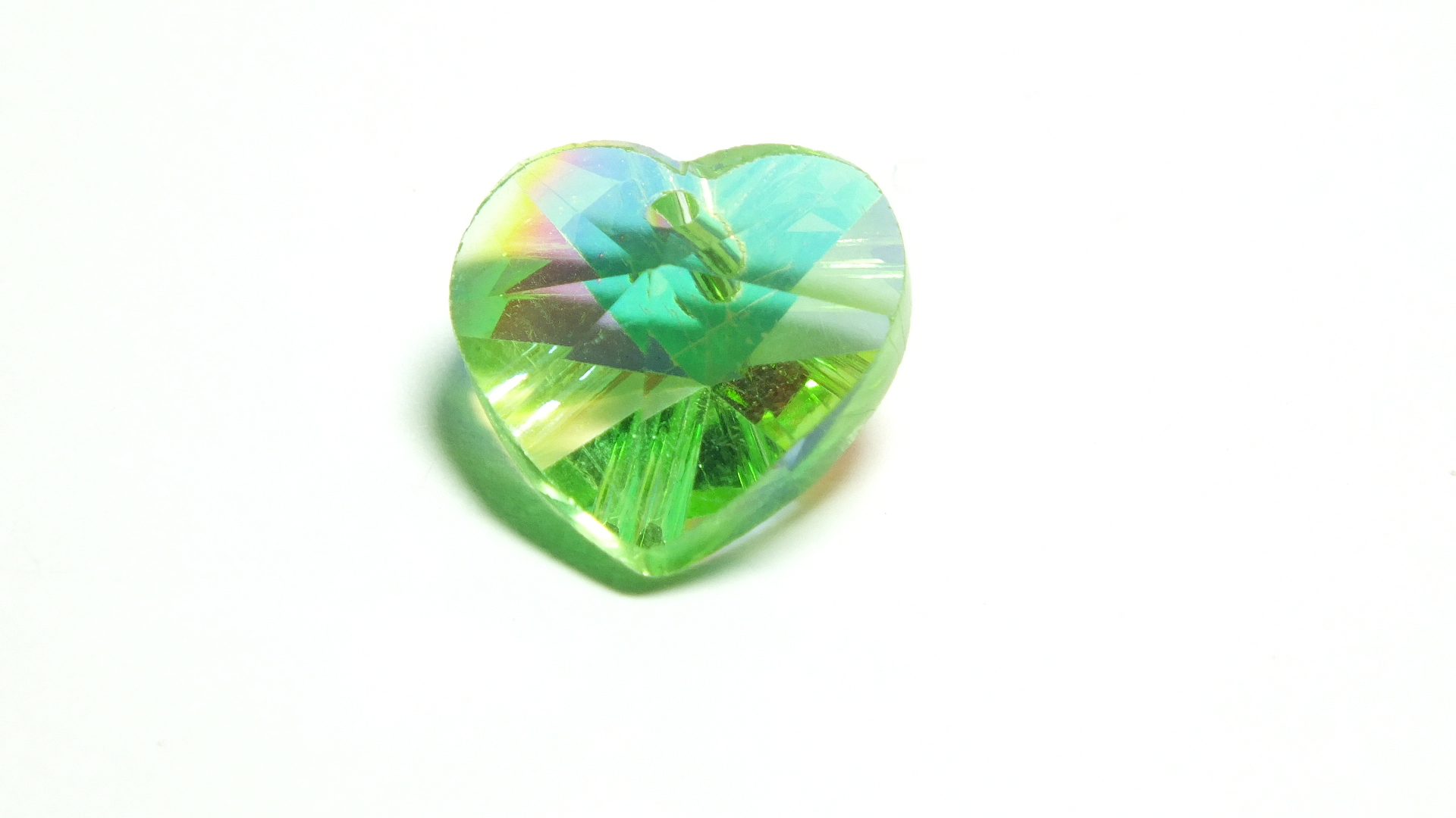 Light Green AB Finish Glass Faceted Heart Charm / Pendant 14x8mm