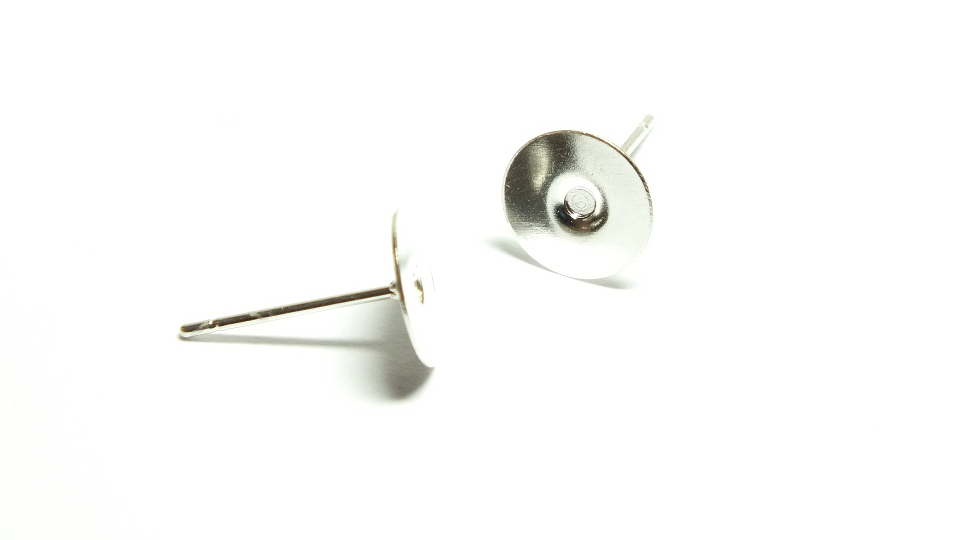 5 x Pairs Silver Coloured Earring Studs with 8mm Flat Pad