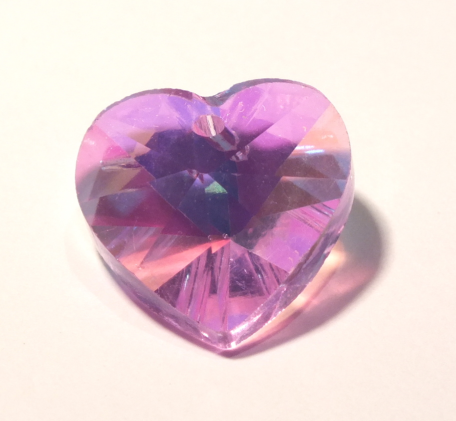 Lilac AB Faceted Heart Charm / Pendant 14x8mm. AB Finish on reverse.