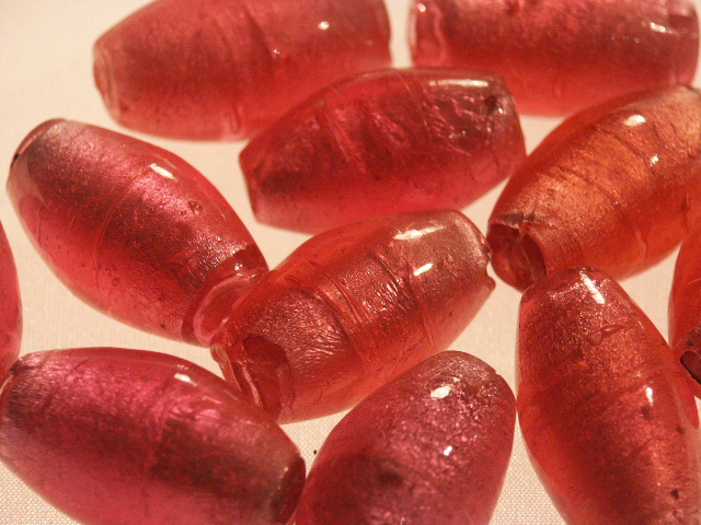 Pink Silver Foil Barrel Bead 30x18mm