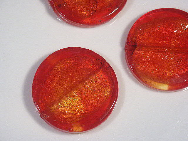 Silver Foil Orange/Red Coin Bead 35x5mm