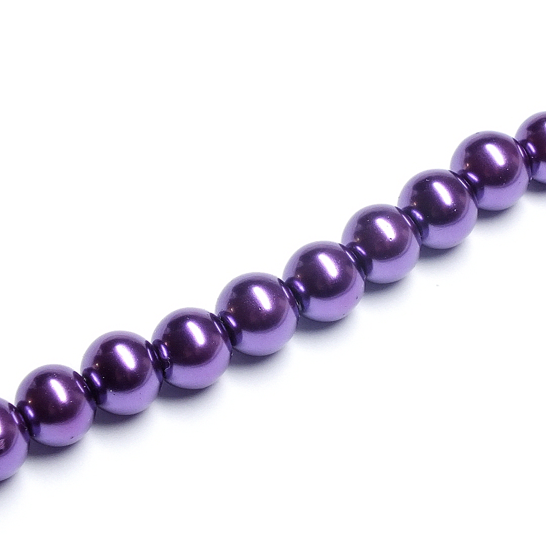 Strand Approx 216 Round Purple Glass Pearls 4mm