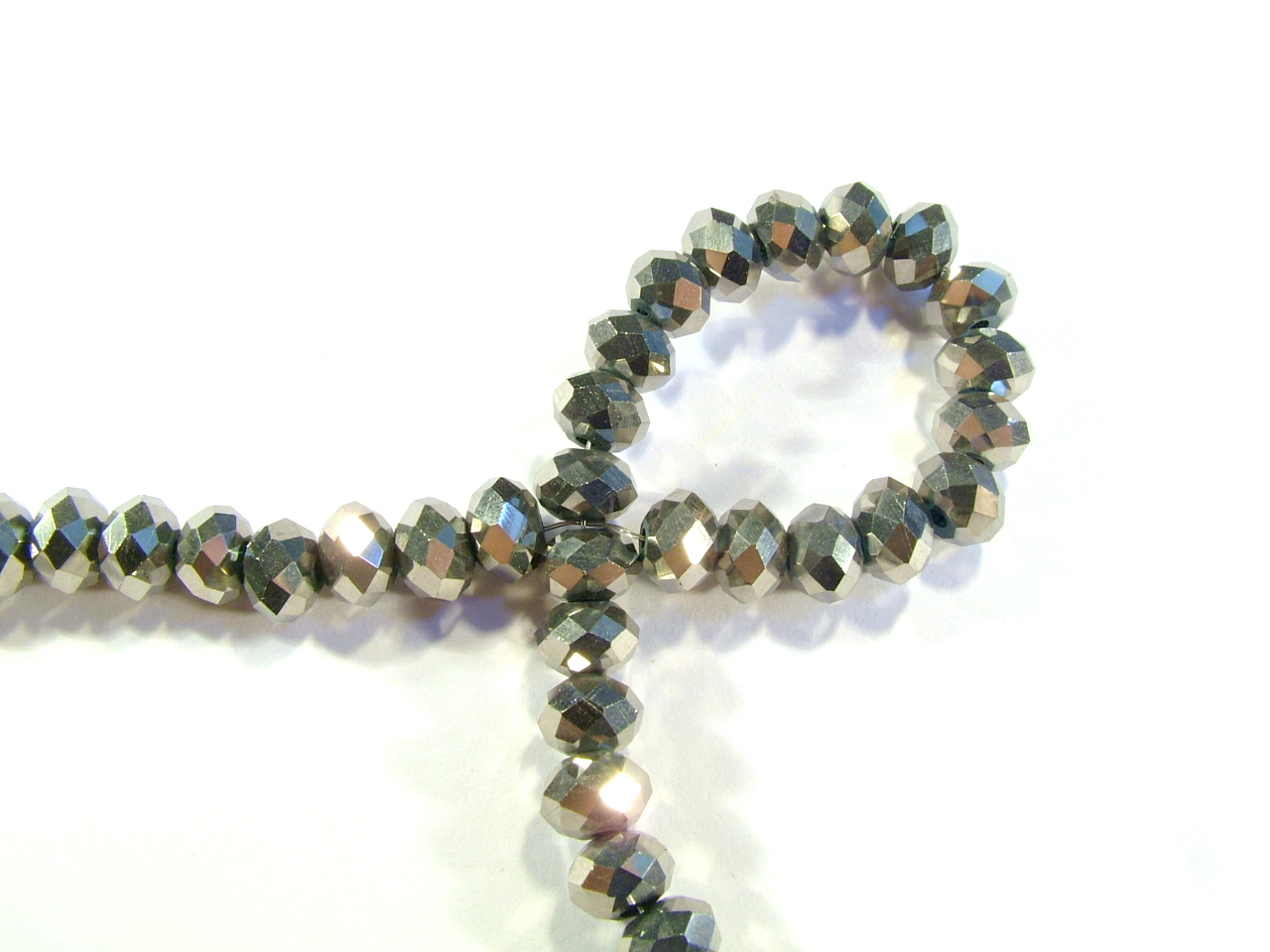 Strand of Approx 200 Faceted Rondelles, Silver Colour 3×2 mm