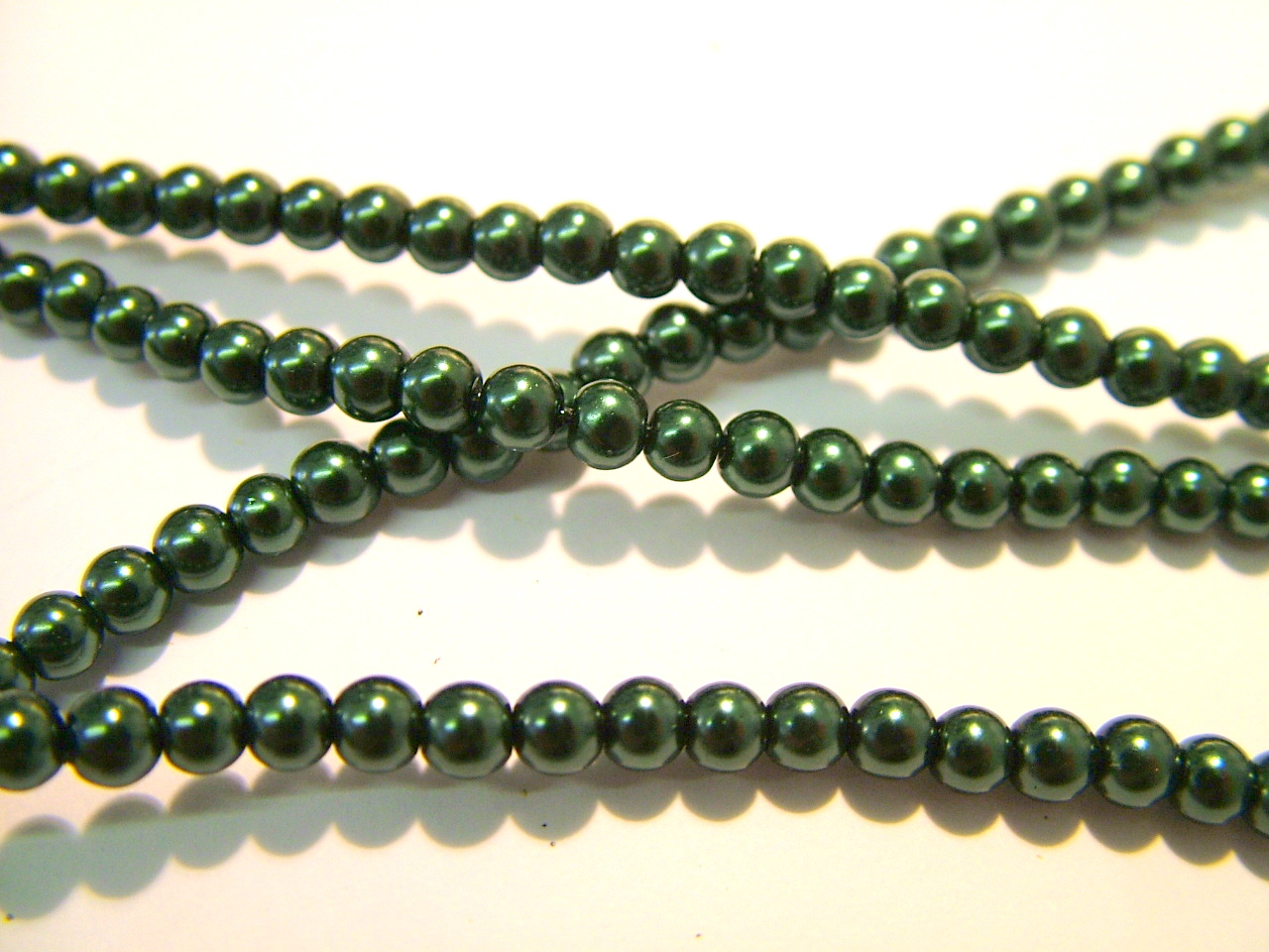 Strand of Approx 216 4mm Forest Green Round Glass Pearls